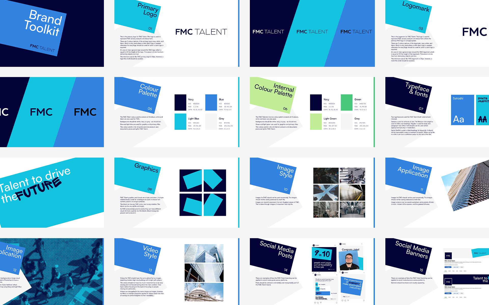 FMC had a strong business foundation to build upon which truly allowed the clean approach everyone is after. Using simple concepts like contrast in font, colour overlays, and boxes but with a slight (and literal) twist created something eye-catching that appeared effortless.